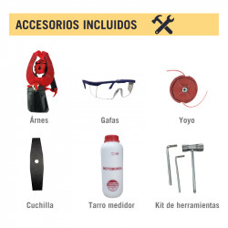 Menor vibración gracias a sus 6 bujes ubicados en la caña Manubrio ajustable y amortiguado Campana y eje con acople roscado, acoples sin desgaste Incluye: Arnés, Kit de herramientas, Cuchilla, Gafas, Tarro medidor y Yoyo. Se recomienda usar lubricante sintético JASOFD Motoborda 2T